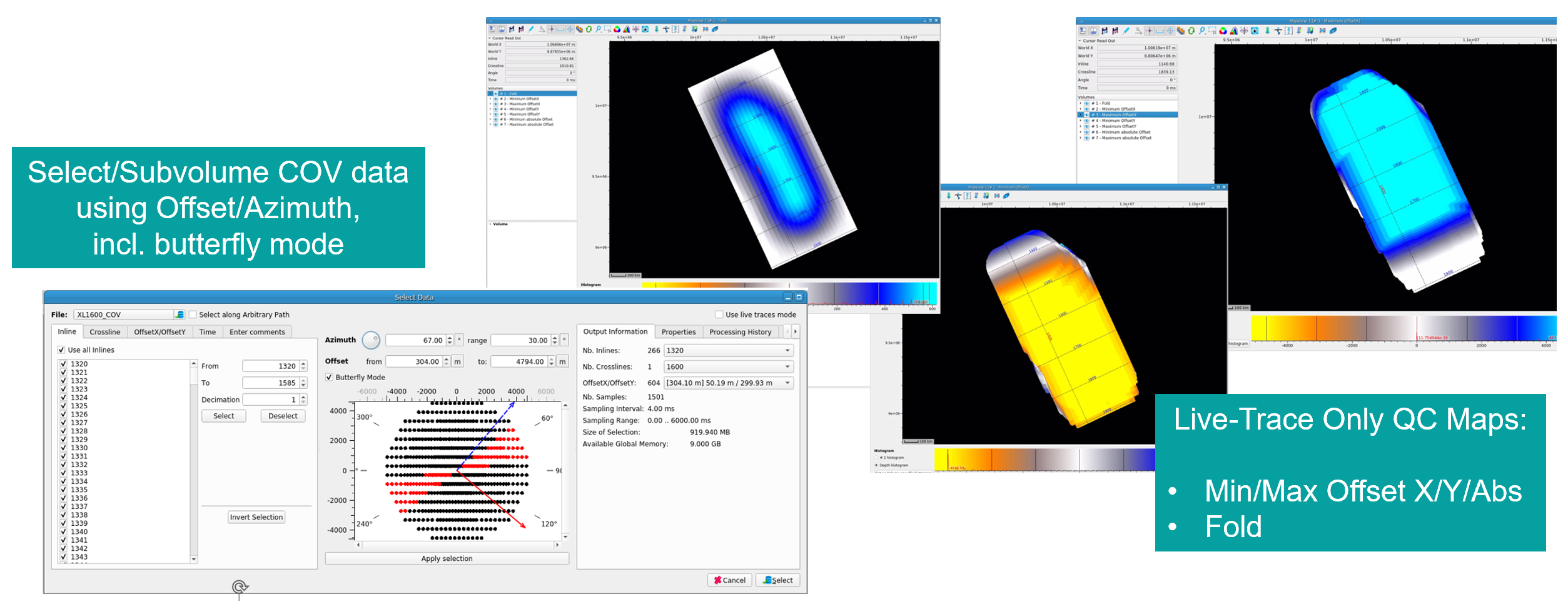 The OBN Data Selection Tool now supports Live-Trace-Only volumes, allowing users to QC, sort (incl. snail & butterfly options), and sub-select, on the fly, irregular datasets directly, without forcing early regularization.